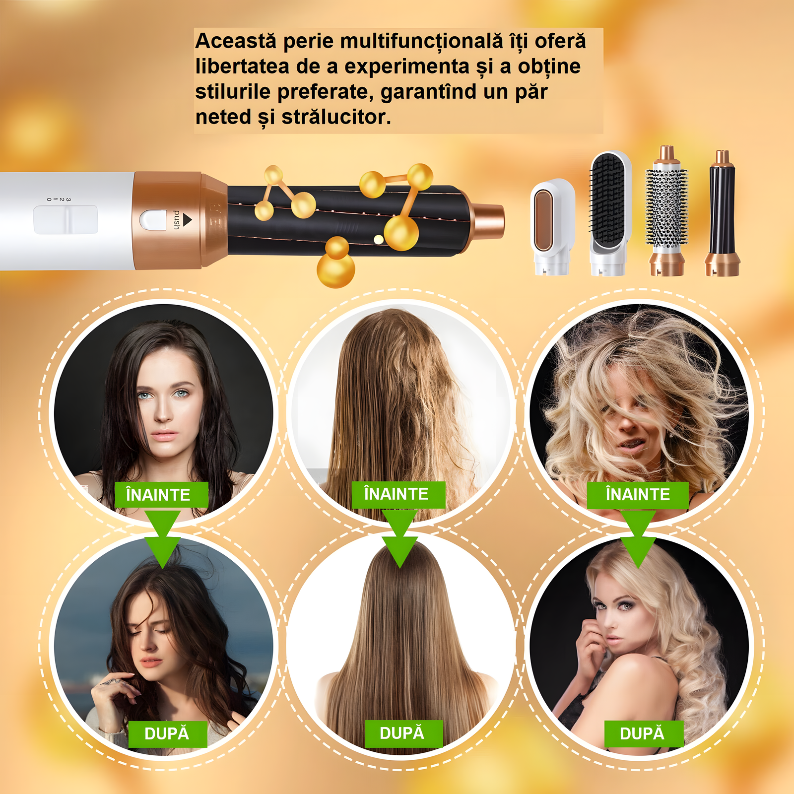 Peria electrica de par cu 7 capete interschimbabile este un instrument inovator si multifunctional, proiectat pentru a oferi utilizatorilor o experienta de coafare completa si personalizata. Cu capacitati de uscare, ondulare, indreptare si coafare a parului, aceasta perie este un ajutor versatil pentru oricine isi doreste sa-si imbunatateasca stilul in confortul propriului camin sau in miscare.
