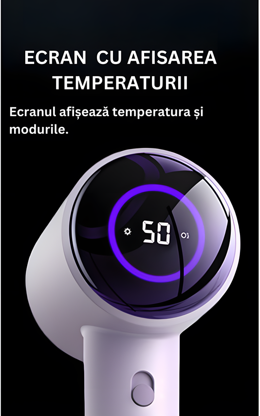 Uscator de Par, Ecran Digital cu Afișarea Temperaturii, 1600W, Ionizare, Mov